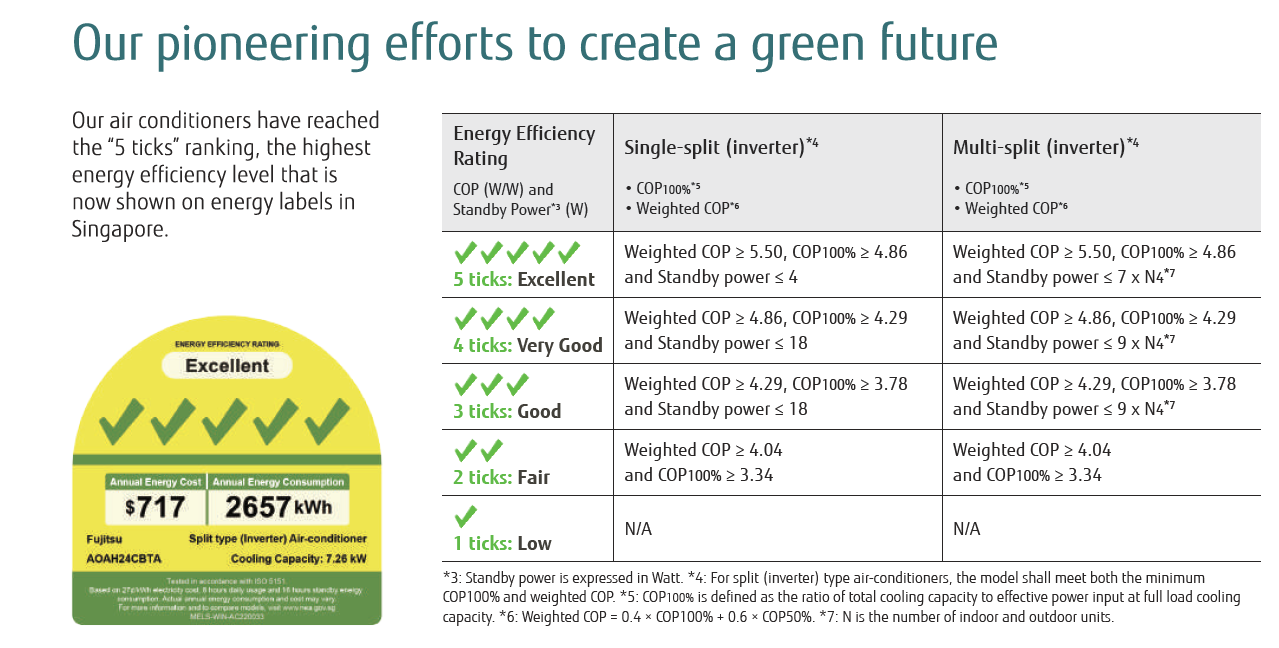 Fujitsu Airstage air conditioners have reach the ''5 ticks'' ranking, the highest energy efficiency level that is now shown on energy labels in Singapore