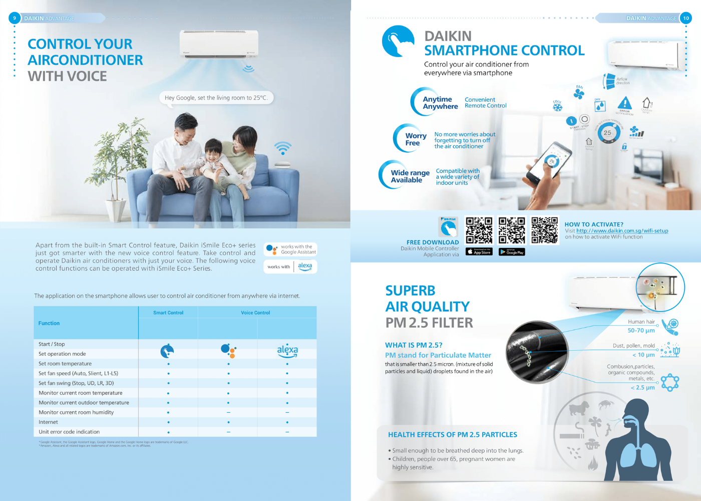 Daikin Mobile Controller can be used for voice control with Google Home or Amazon Echo Smart Speakers and their applications. You can now control the iSmart Envi series with your voice.