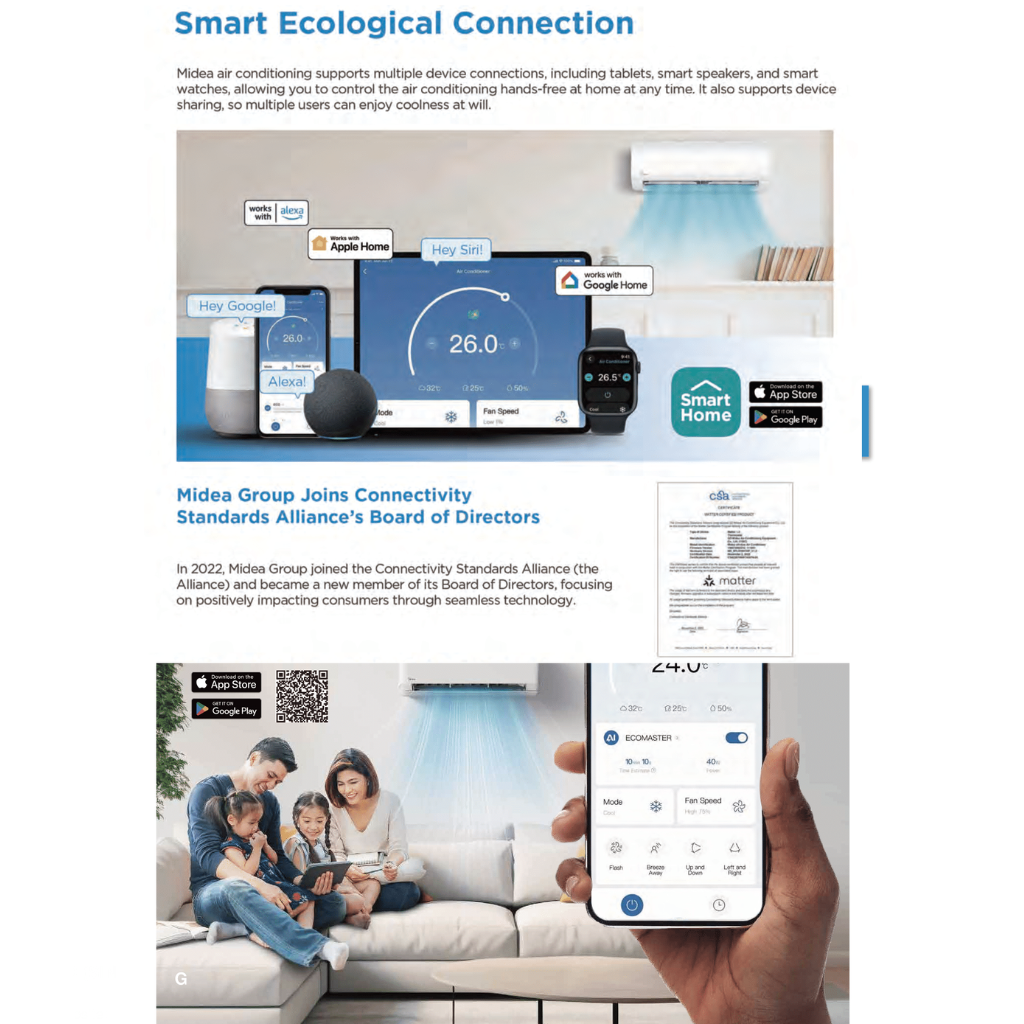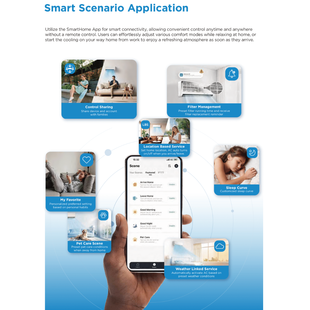 · SmartHome Wi‑Fi Control – Control your aircon anytime via smartphone, monitor energy usage and receive