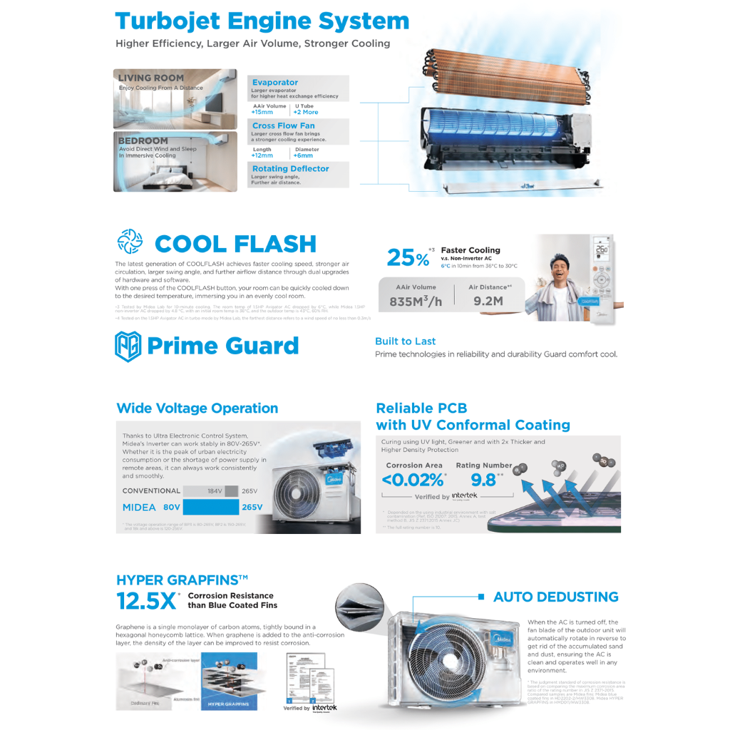 · Prime Guard Reliability System – Auto de-dusting outdoor fan, UV-coated PCB and reinforced components for