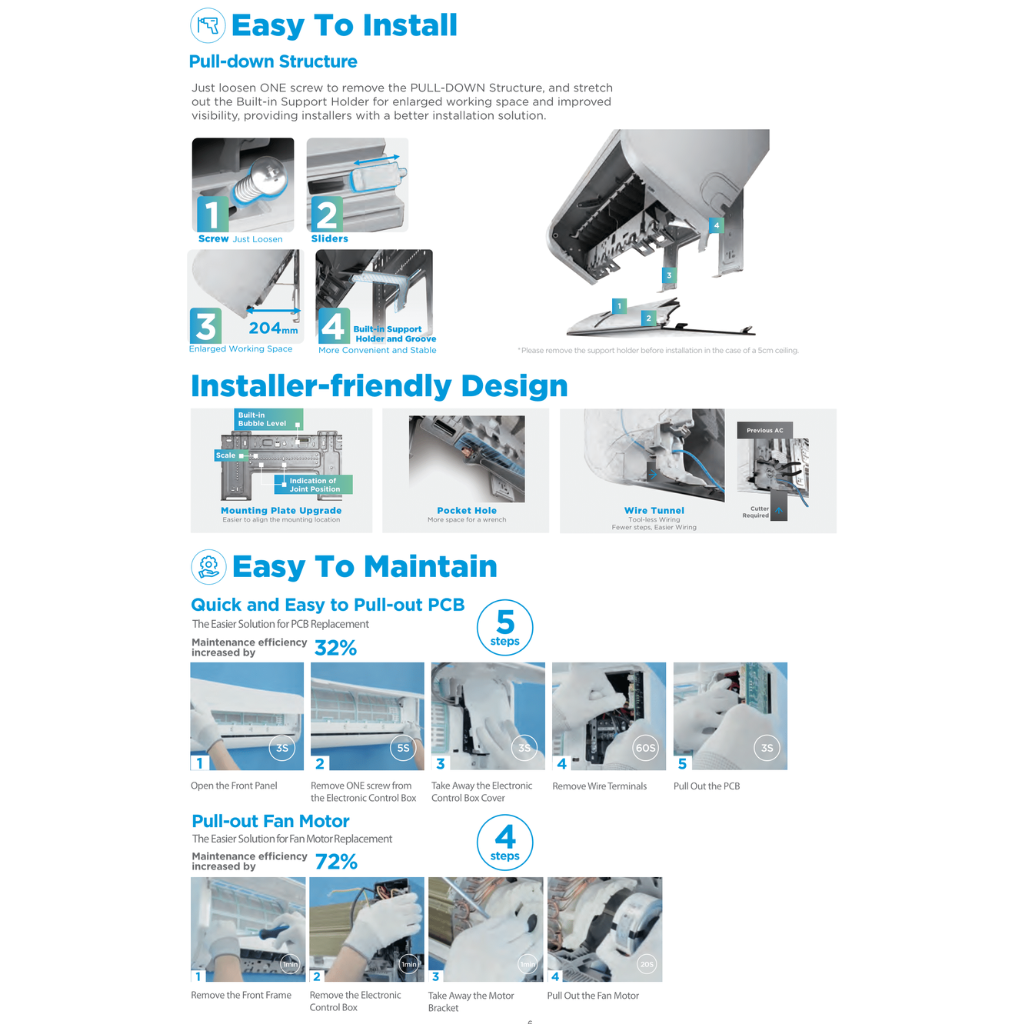 -I-Clean Self-Cleaning Technology – Removesdust, bacteria, and moisture inside the indoor unit to maintain clean airflow.